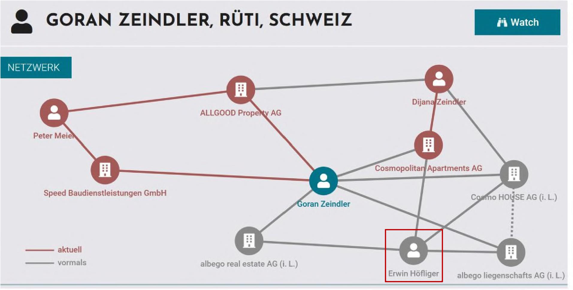 Auch diese Grafik zeigt die Nähe von RA Erwin Höfliger zu Zeindler auf: